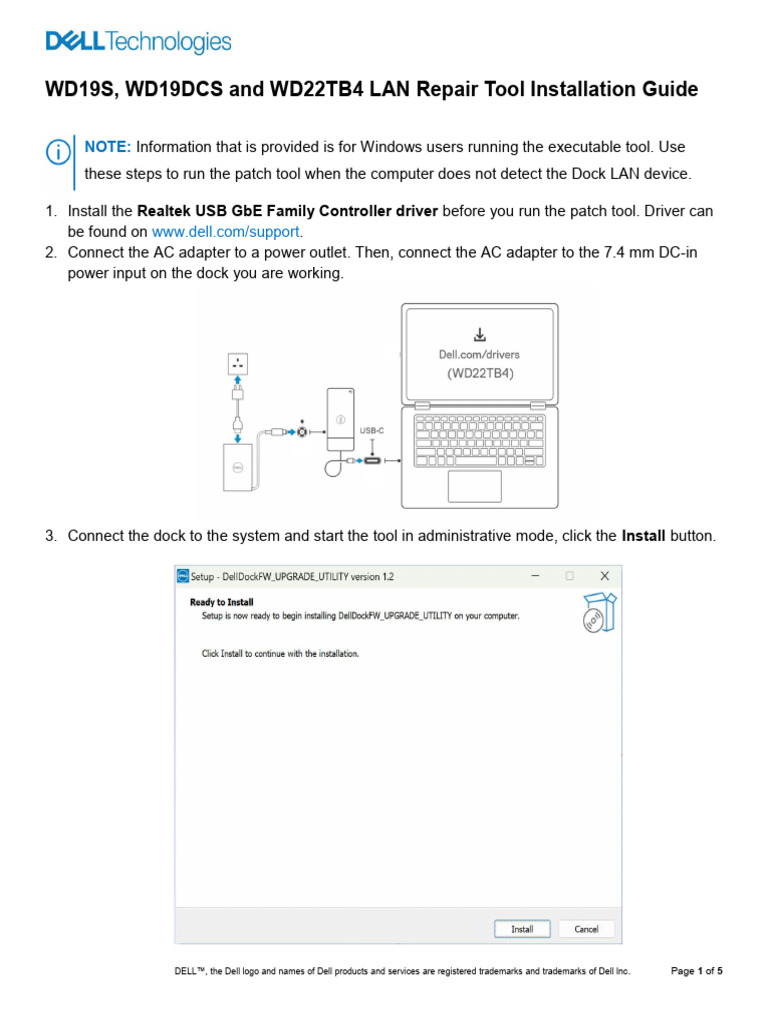 WD19S, WD19DCS and WD22TB4 LAN Repair Tool Installation Guide