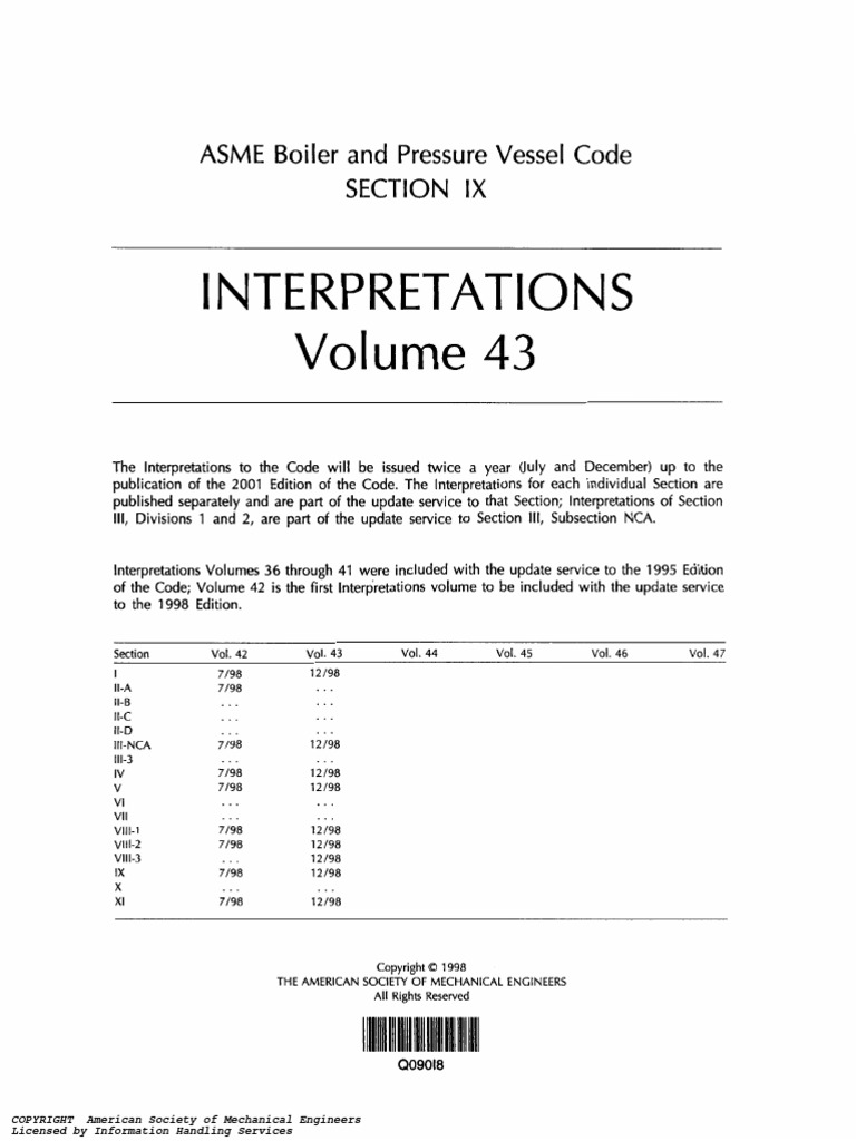 This publication includes all written interpretations issued between the indicated dates by the ASME