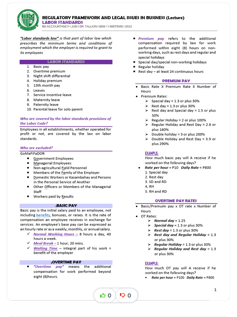 “Labor standards law” is that part of labor law which Premium pay refers to the additional