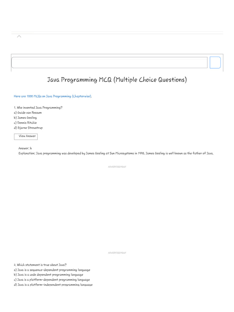 Here are 1000 MCQs on Java Programming (Chapterwise).