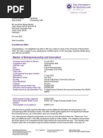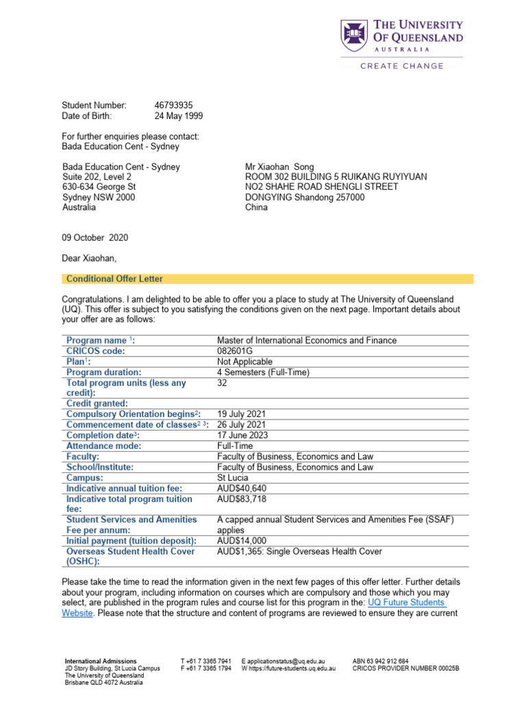 UQ Conditional Offer Letter Details