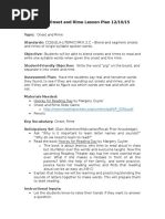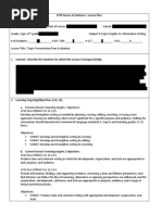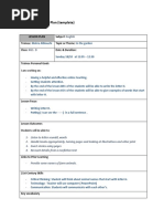a. Today we will be learning how to create an effective introduction when we are writing fiction b. Students will be receiving a picture c. Students will brainstorm for 3 minutes about the picture individually d. Remind students to be creative and that this brainstorming should be about a fictional story that they can write with inspiration from the picture e. Students will pick one group writer in the group and will create a 46 sentence introduction for the story (about 8 minutes) f. At the end we will share stories and figure out which ones are effective and why. Not every group will share (about 5 minutes) Class activities (what you/students will Class activities (why you will do them) do) 1. Give introduction (above) 1. This will allow the class to move 2. Have students take out a piece effortlessly without students of paper and a pencil. having to move in the middle of 3. Have students slip-write about class. This will allow students to general ideas about the picture understand their expectations so and what ideas the picture class can move smoothly inspires individually for 2 2. This will allow students to have a minutes. Be sure to set timer. transition. This transition lets 4. Have students talk to group (3-4 students know exactly what they students) members and create need to be doing and also that an introduction to a fiction piece they need to get started. that is about 4-6 (complete) 3. Slip writing individually will allow sentences long. Students should students to collect their thoughts be working quietly with group before working as a group. This and should be on task. The will make group work more teacher will be circulating during efficient and effective. the activity (about 8 minutes). 4. This will allow students to get a 5. Come back as a class and share bigger perspective on the stories. While sharing a story the introduction and they will be able class will provide feedback on to formulate an idea in a group. what they liked and didnt like 5. Coming back as a class will allow (about 5 minutes). Write ideas students to have even more on the board in two columns. perspectives and will allow one 6. Have students turn in paper as a student to speak to the class. group with brainstorming papers This will also allow the class to attached. understand what is an effective introduction and what is not effective. 6. This will allow all students to be assessed on individual work and on group work.