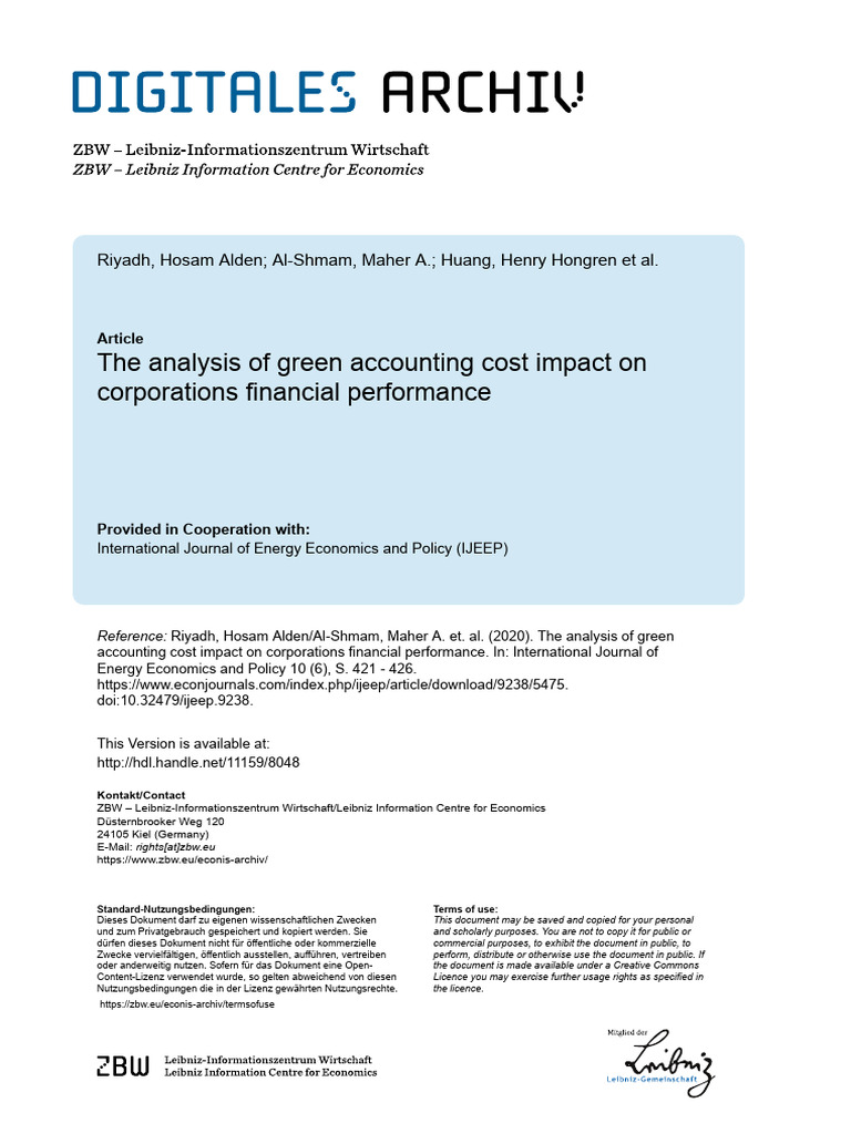 Riyadh, et al.: The Analysis of Green Accounting Cost Impact on Corporations Financial Performance