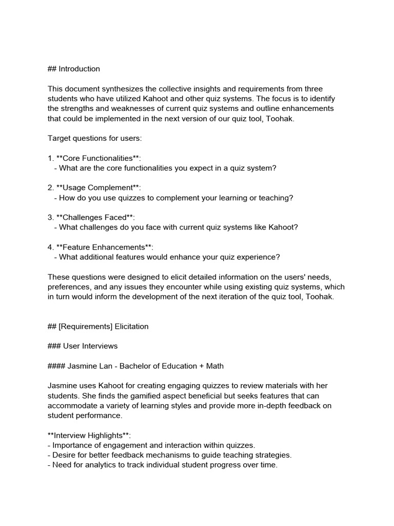 - What challenges do you face with current quiz systems like Kahoot?