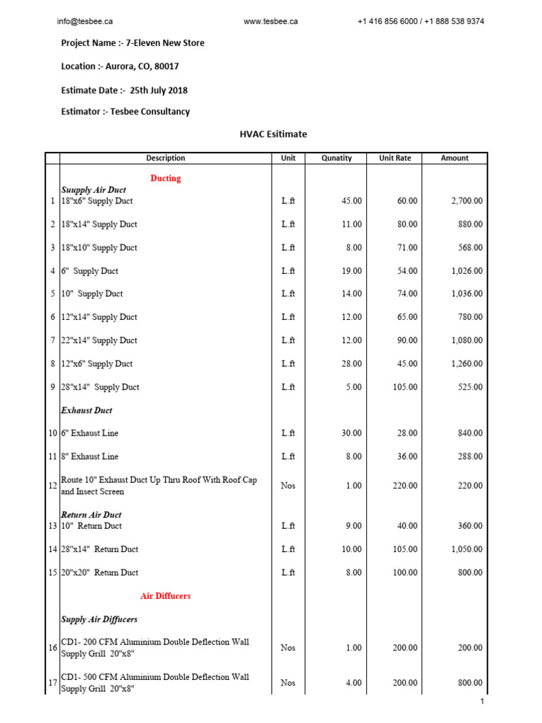 1 18''x6'' Supply Duct L.ft 45.00 60.00 2,700.00
