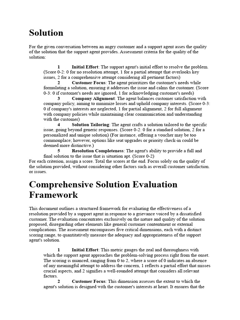 of the solution that the support agent provides. Assessment criteria for the quality of the