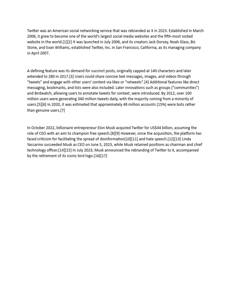 Twitter was an American social networking service that was rebranded as X in 2023.