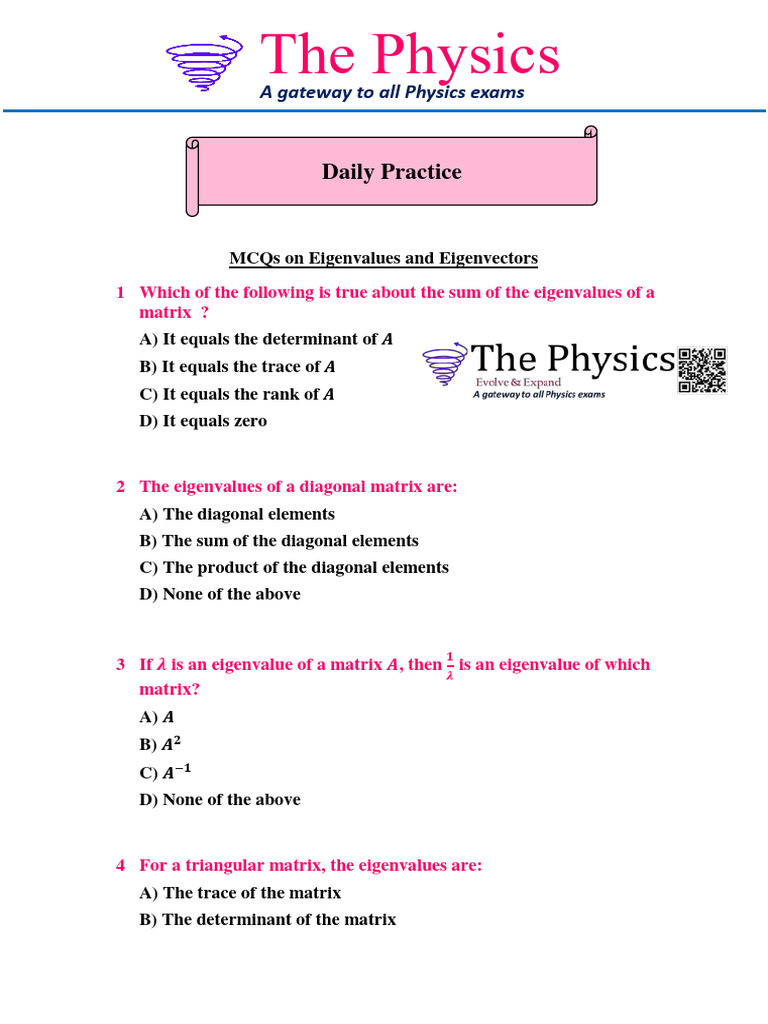 14 If the eigenvalues of a matrix 𝑨 are 3 and -3 , the eigenvalues of 𝑨𝟐