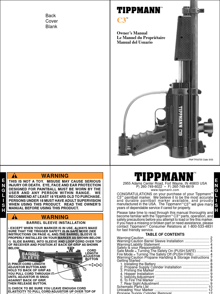 S WHEN USING THIS PRODUCT. READ THE OWNER’S manufactured in the USA. The Tippmann C3 will give many TM TM