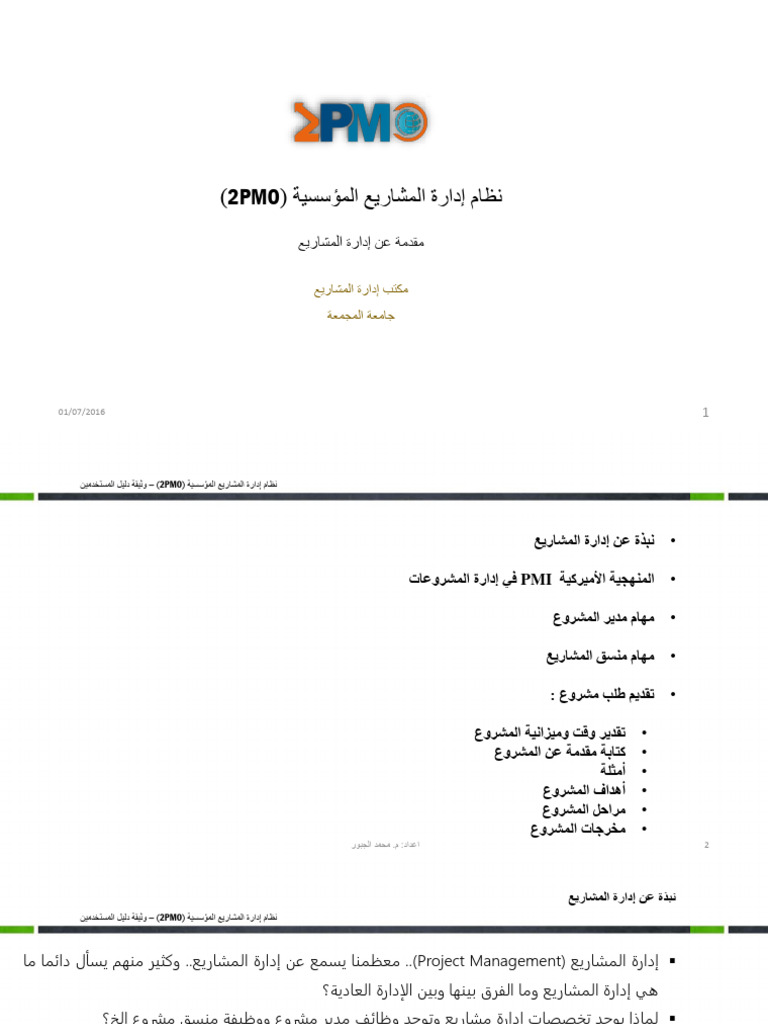 نظام إدارة المشاريع المؤسسية ( – )2PMOوثيقة دليل المستخدمين
