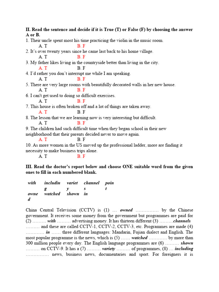 China Central Television (CCTV) is (1) … owned …………… by the Chinese