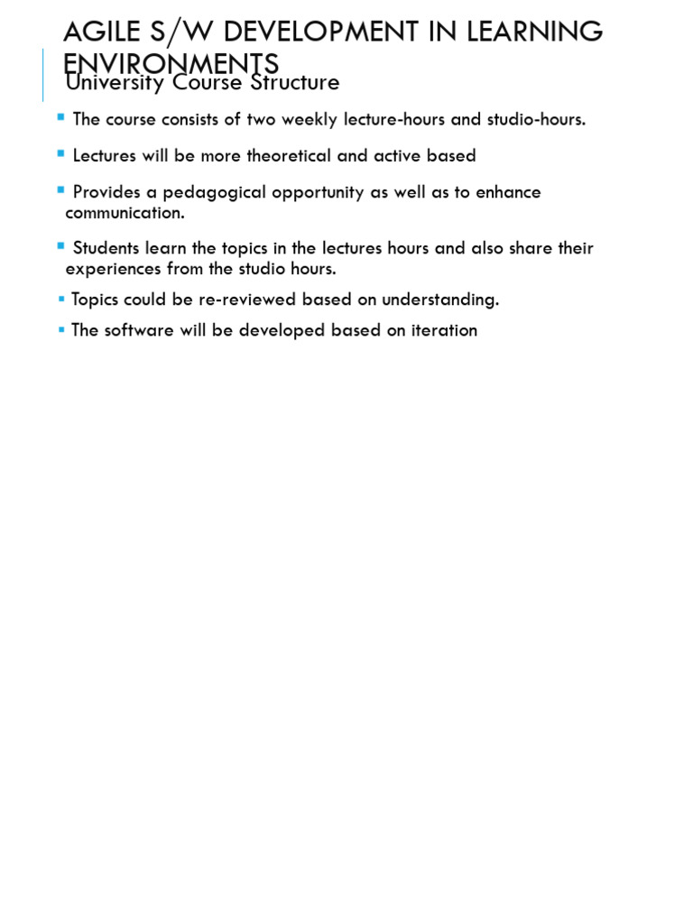 ▪ The course consists of two weekly lecture-hours and studio-hours.