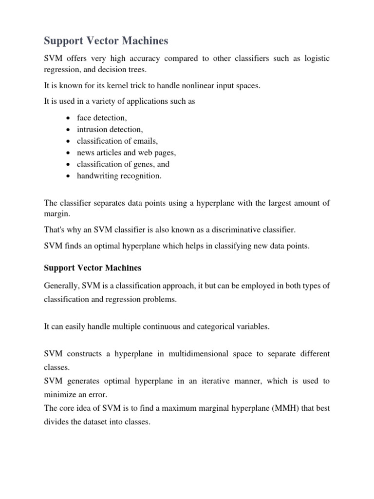 SVM generates optimal hyperplane in an iterative manner, which is used to