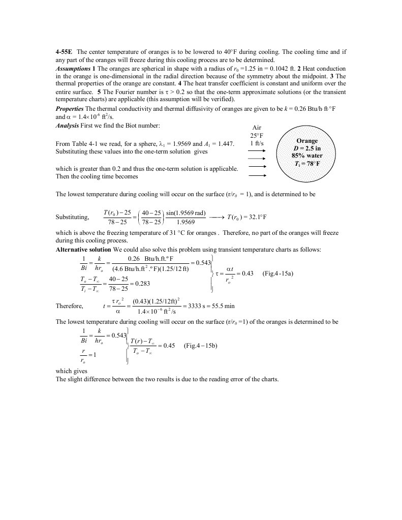 4-55E The center temperature oI oranges is to be lowered to 40 during cooling.