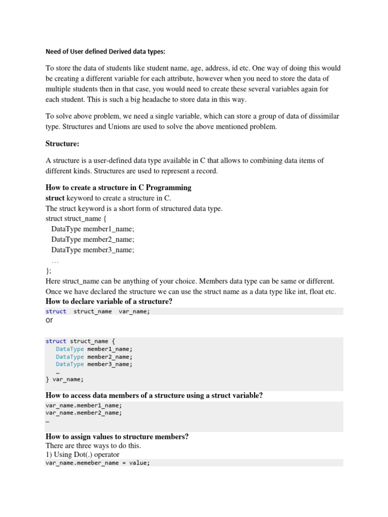 Once we have declared the structure we can use the struct name as a data type like int, float etc.