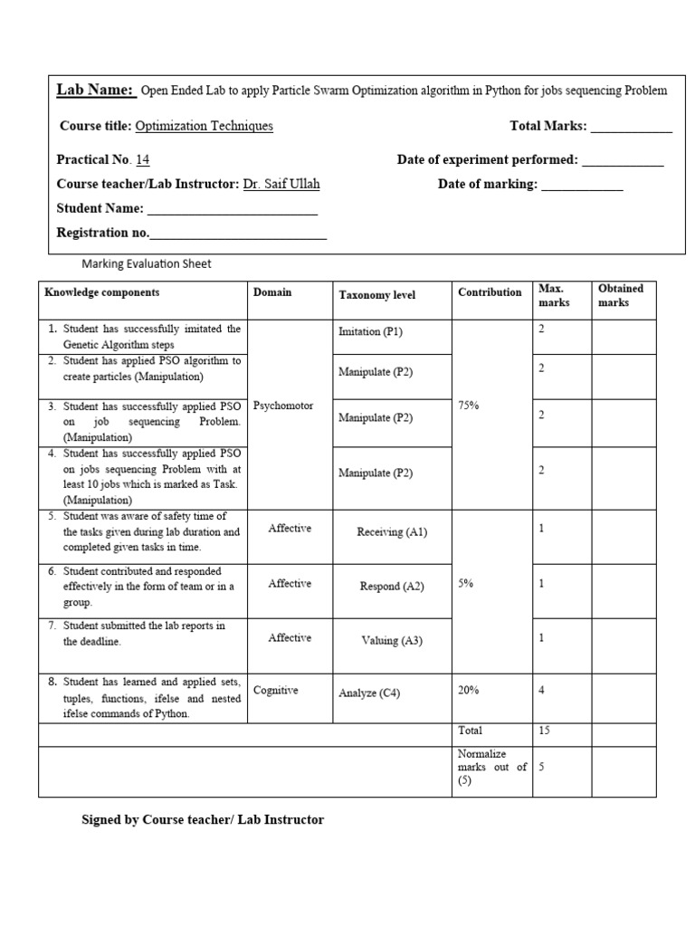 Lab Name: Open Ended Lab to apply Particle Swarm Optimization algorithm in Python for jobs sequencing Problem