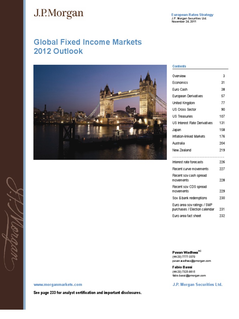 European Rates Strategy Global Fixed Income Markets 2012 Outlook November 24, 2011 Pavan WadhwaAC (44-20) 7777-3370 Kedran Panageas (44-20) 7777-0326 J.P. Morgan Securities Ltd
