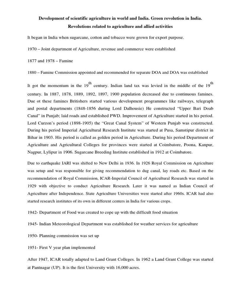 Agriculture after Independence. State Agriculture Universities were started after 1960s. ICAR had also