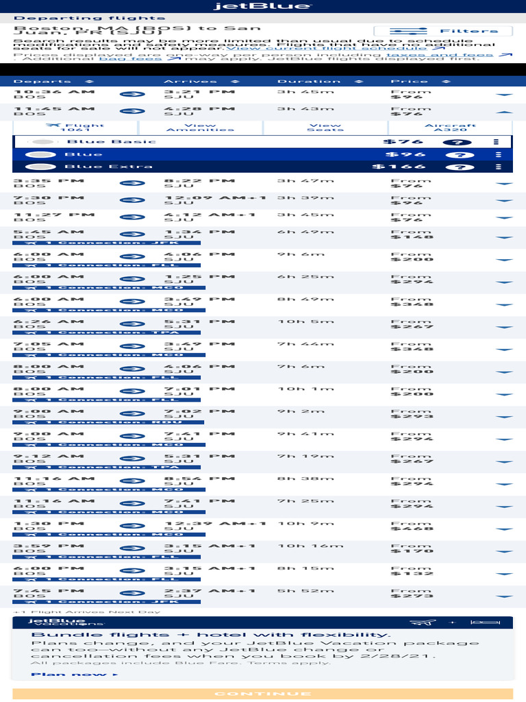 . Additional bag fees may apply. JetBlue flights displayed first.