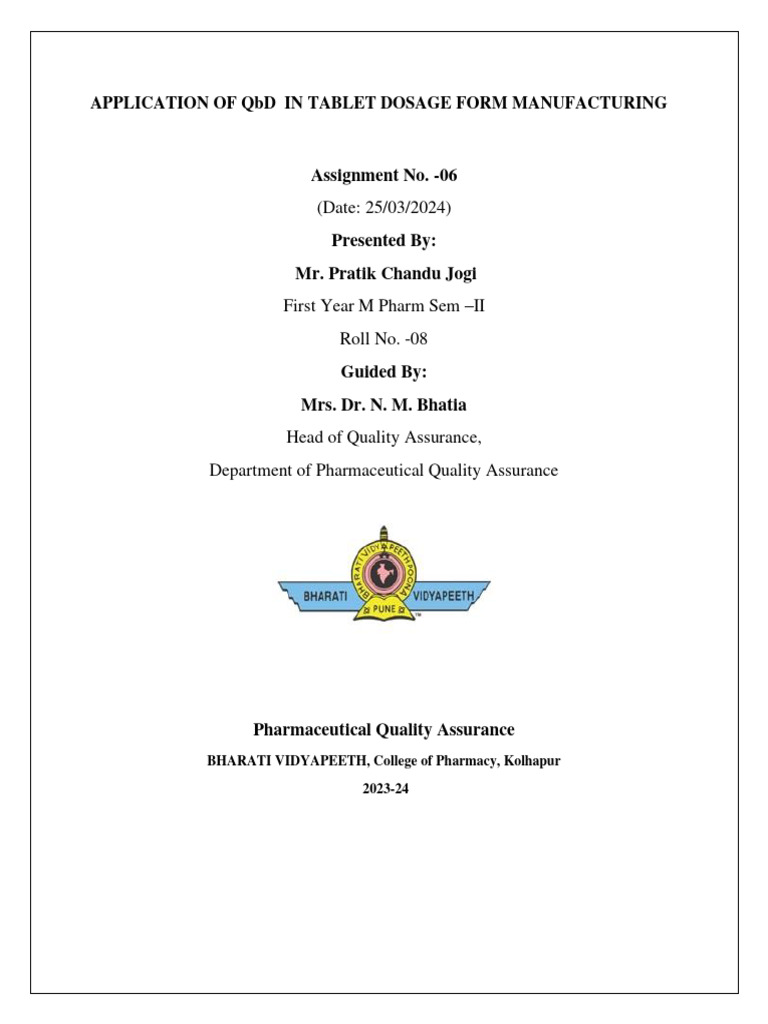 APPLICATION OF QbD IN TABLET DOSAGE FORM MANUFACTURING