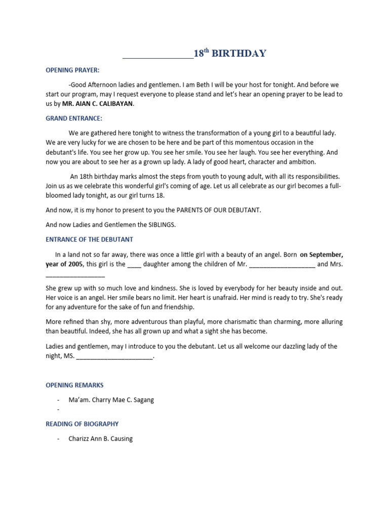 We are gathered here tonight to witness the transformation of a young girl to a beautiful lady.