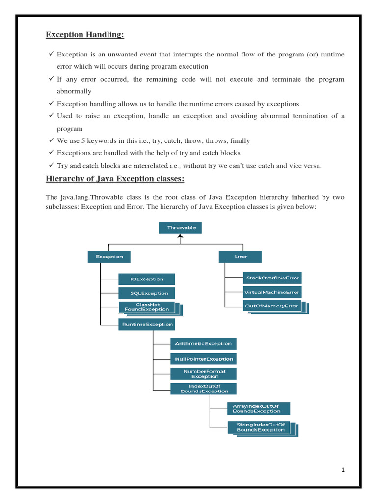 subclasses: Exception and Error. The hierarchy of Java Exception classes is given below: