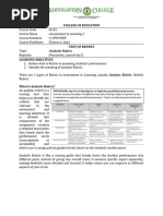 RUBRICS FOR WRITTEN WORK (ASSIGNMENT)