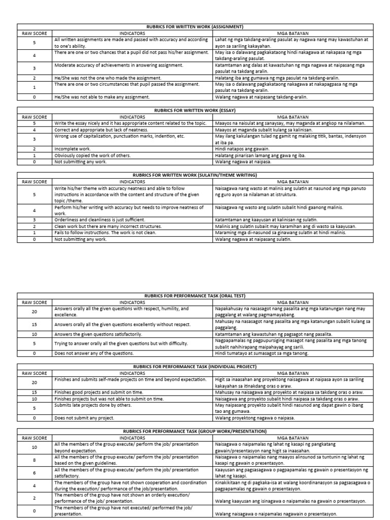 All written assignments are made and passed with accuracy and according Lahat ng mga takdang-araling pasulat ay nagawa nang may kawastuhan at
