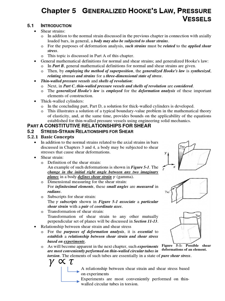 Mechanics of Materials Chapter 5: Generalized, Hooke's Law, Pressure Vessels