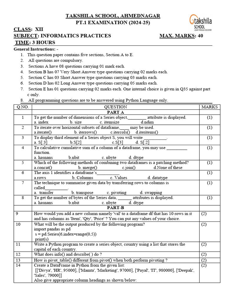 SUBJECT: INFORMATICS PRACTICES MAX. MARKS: 40