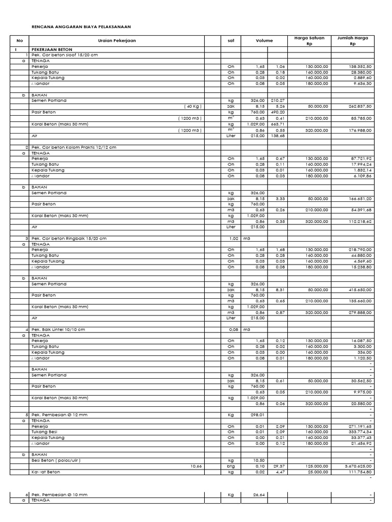 RENCANA ANGGARAN BIAYA PELAKSANAAN