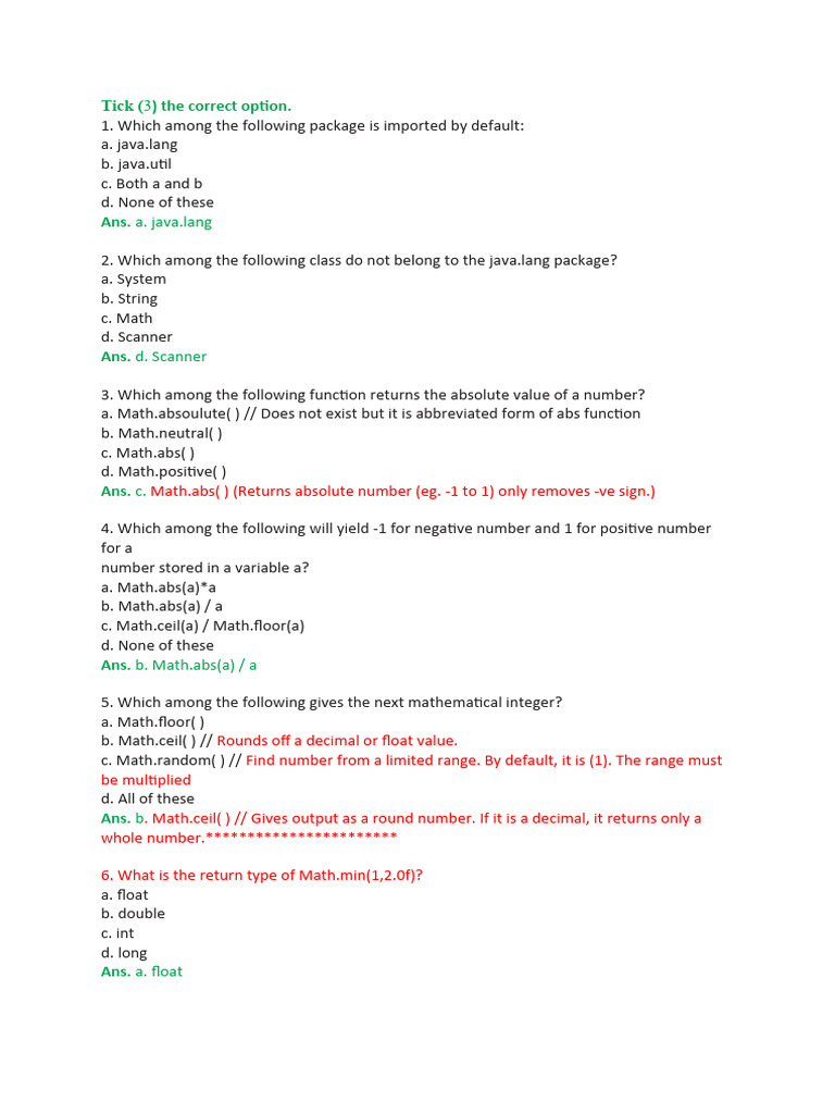 Ans. b. [Link]( ) // Gives output as a round number. If it is a decimal, it returns only a