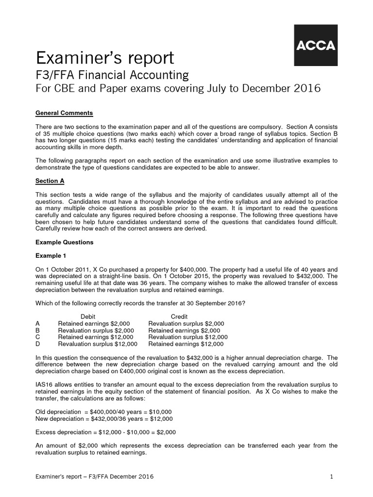 The following paragraphs report on each section of the examination and use some illustrative examples to