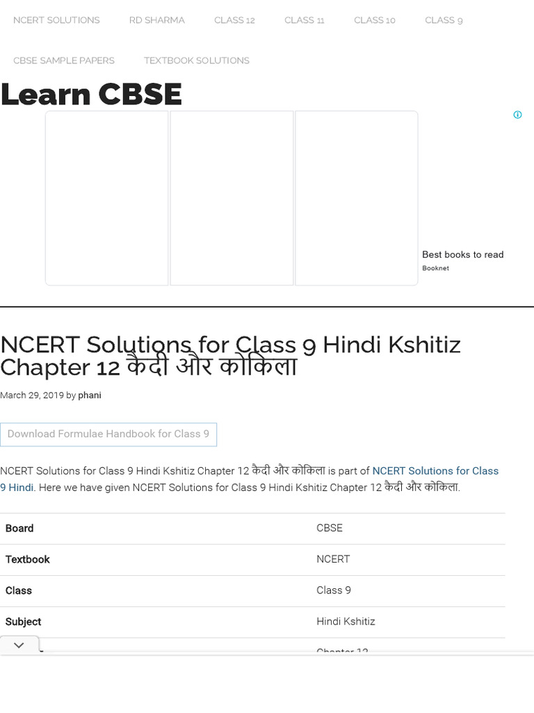 NCERT Solutions for Class 9 Hindi Kshitiz Chapter 12 कै दी और कोकिला is part of NCERT Solutions for Class