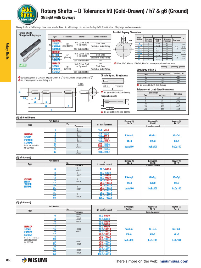 Rotary Shafts - D Tolerance h9 (Cold-Drawn) / h7 & g6 (Ground) Rotary Shafts - D Tolerance h9 (Cold-Drawn) / h7 & g6 (Ground)