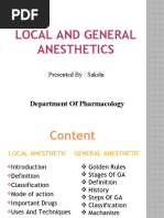 Drugs used: • Cocaine, procaine, cinchocaine—amino esters. • Lignocaine,