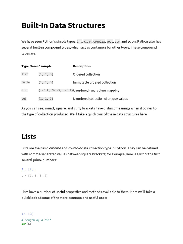 Built-In Data Structures