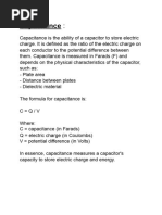Capacitance is measured in farads F, micro Farads or pico farads.