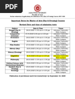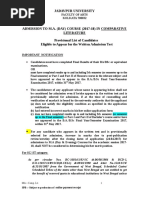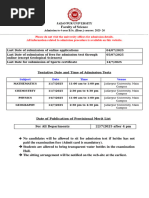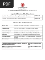Tentative Date and Time of Admission Tests