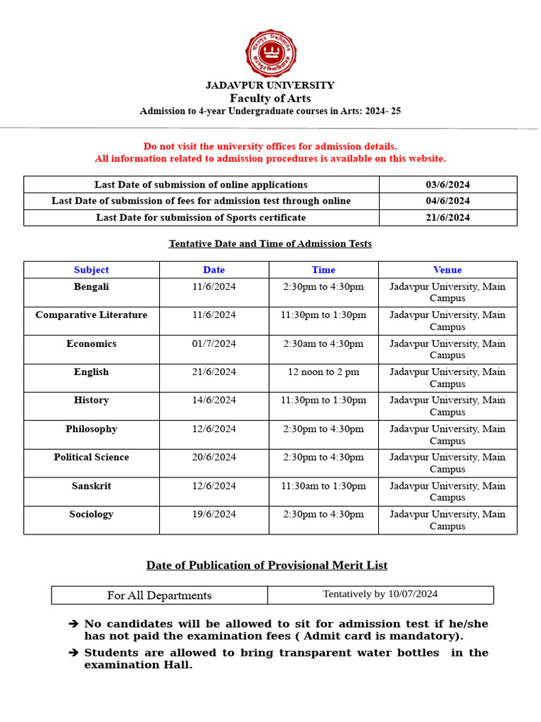 Bengali 11/6/2024 2:30pm to 4:30pm Jadavpur University, Main