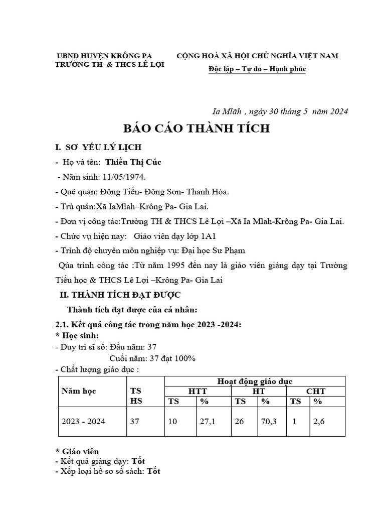 Trên đây là những thành tích mà tôi đã đạt được do sự nỗ lực phấn đấu của bản