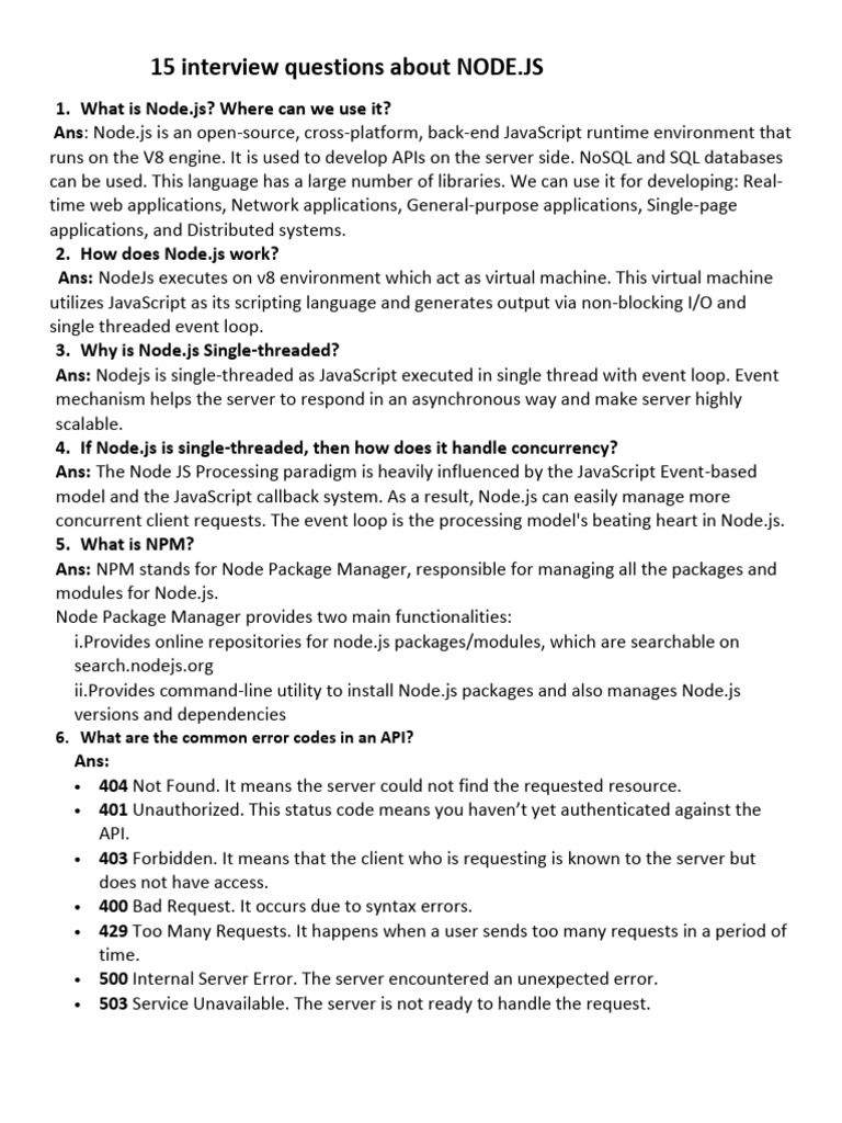 15 interview questions about NODE.