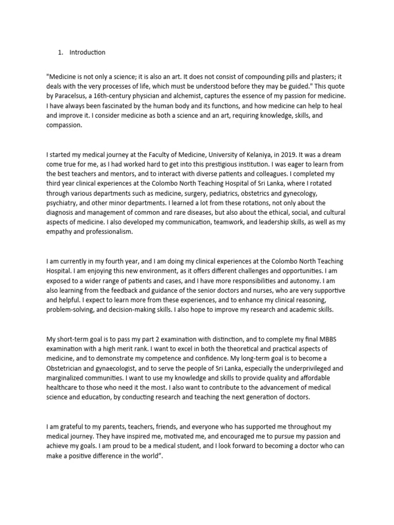 achieve my goals. I am proud to be a medical student, and I look forward to becoming a doctor who can