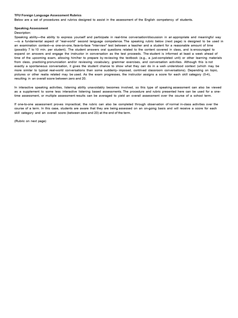 TFU Foreign Language Assessment Rubrics