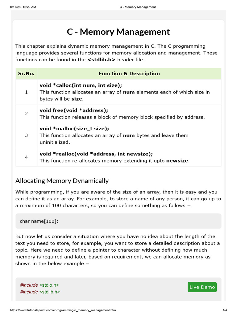 https://www.tutorialspoint.com/cprogramming/c_memory_management.htm 1/4
