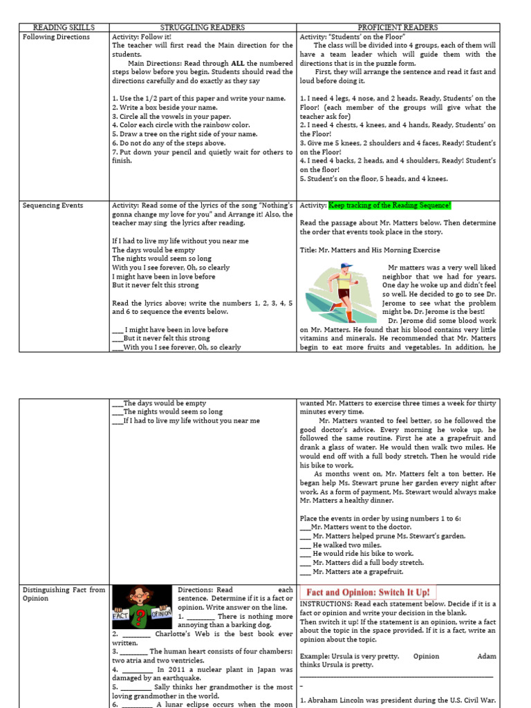 READING SKILLS STRUGGLING READERS PROFICIENT READERS