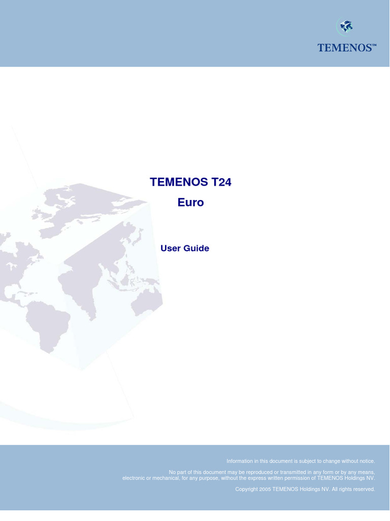 perform a conversion of the system base currency. Any reference to Euro in this document could