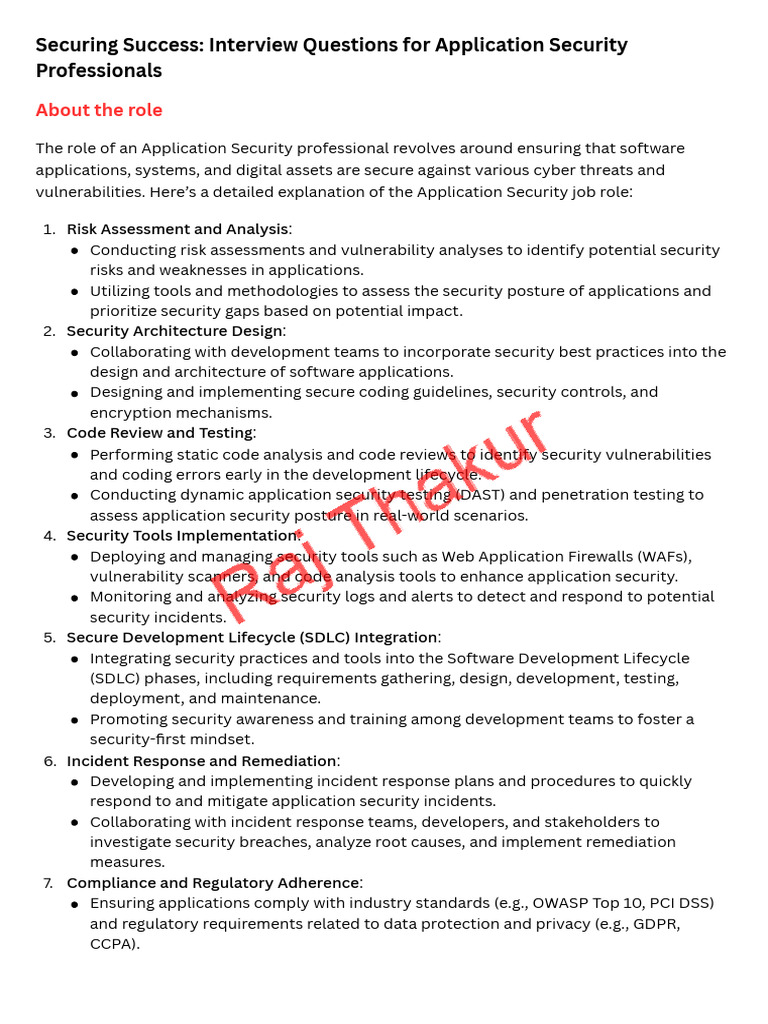 vulnerabilities. Here’s a detailed explanation of the Application Security job role: