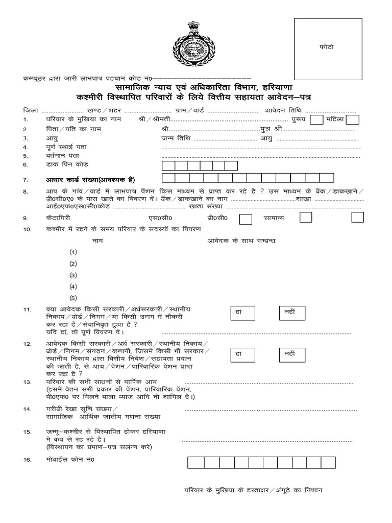 d”ehjh foLFkkfir ifjokjksa ds fy;s foŸkh; lgk;rk vkosnu&i=