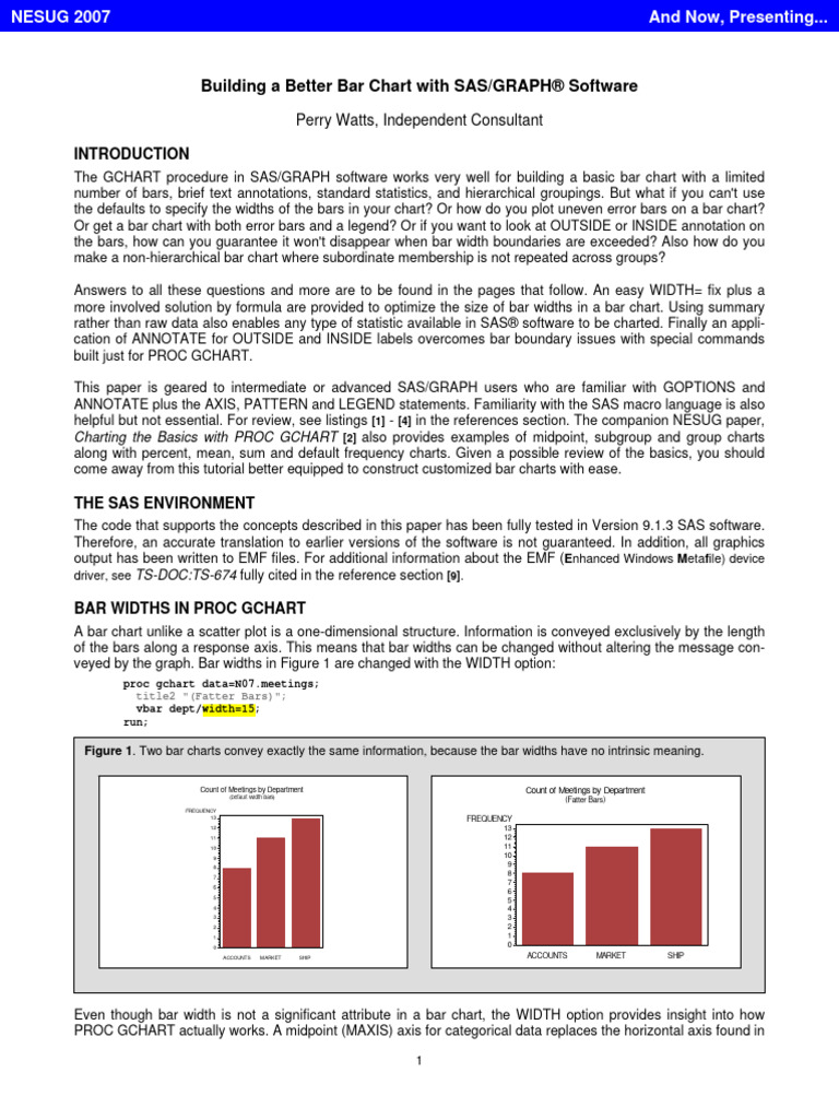 Figure 5. Acceptable bar charts are generated by WIDTH=large number or by formula. WIDTH= is much easier, but the